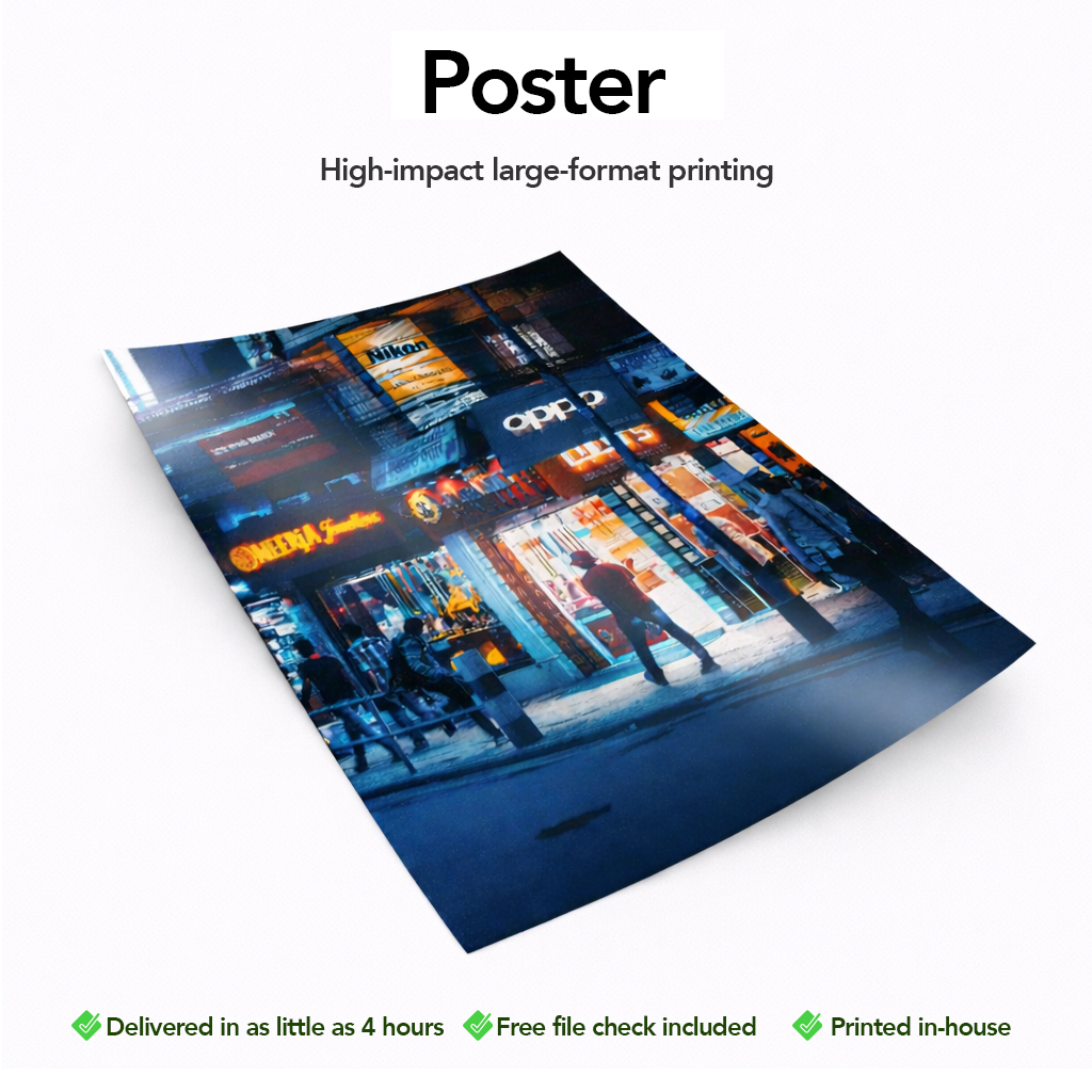 Printed using high-resolution digital technology on premium coated paper, your artwork stands out with strong contrast, crisp text, and consistent colour reproduction. Ideal for short-term campaigns, urgent promotions, and fast-turnaround projects.