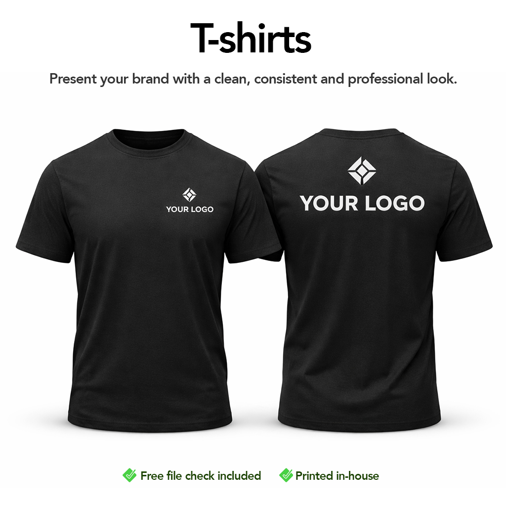 Designed for durability and comfort, our printed T-shirts help your business stand out while keeping your team looking professional and unified.